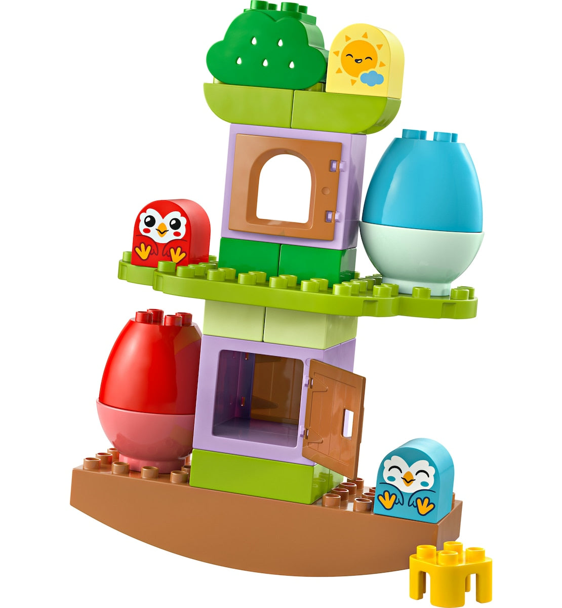 Con este juego preescolar, diseñado para potenciar las habilidades de resolución de problemas y la paciencia, los bebés apilan elementos para equilibrar el árbol. Los jóvenes amantes de los animales pueden colocar ladrillos extra para estabilizar el árbol o, simplemente, explorar la casa con las figuras LEGO® DUPLO® de búhos.