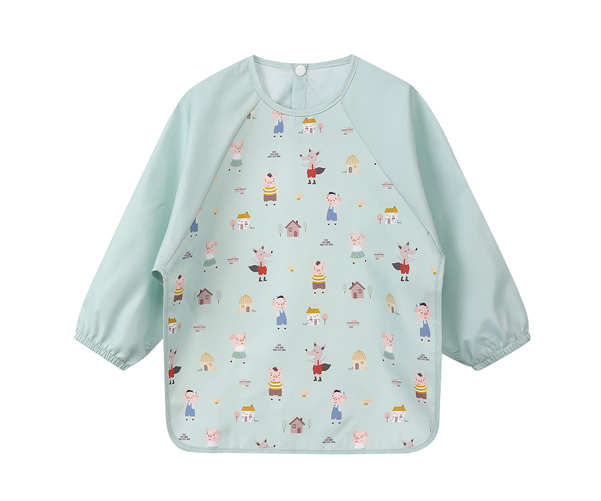 Está fabricado en poliéster con acabado waterproof, una capa repelente al agua y los líquidos, lo que lo hace ideal para proteger la ropa de tu peque durante las comidas y facilitando su limpieza posterior.