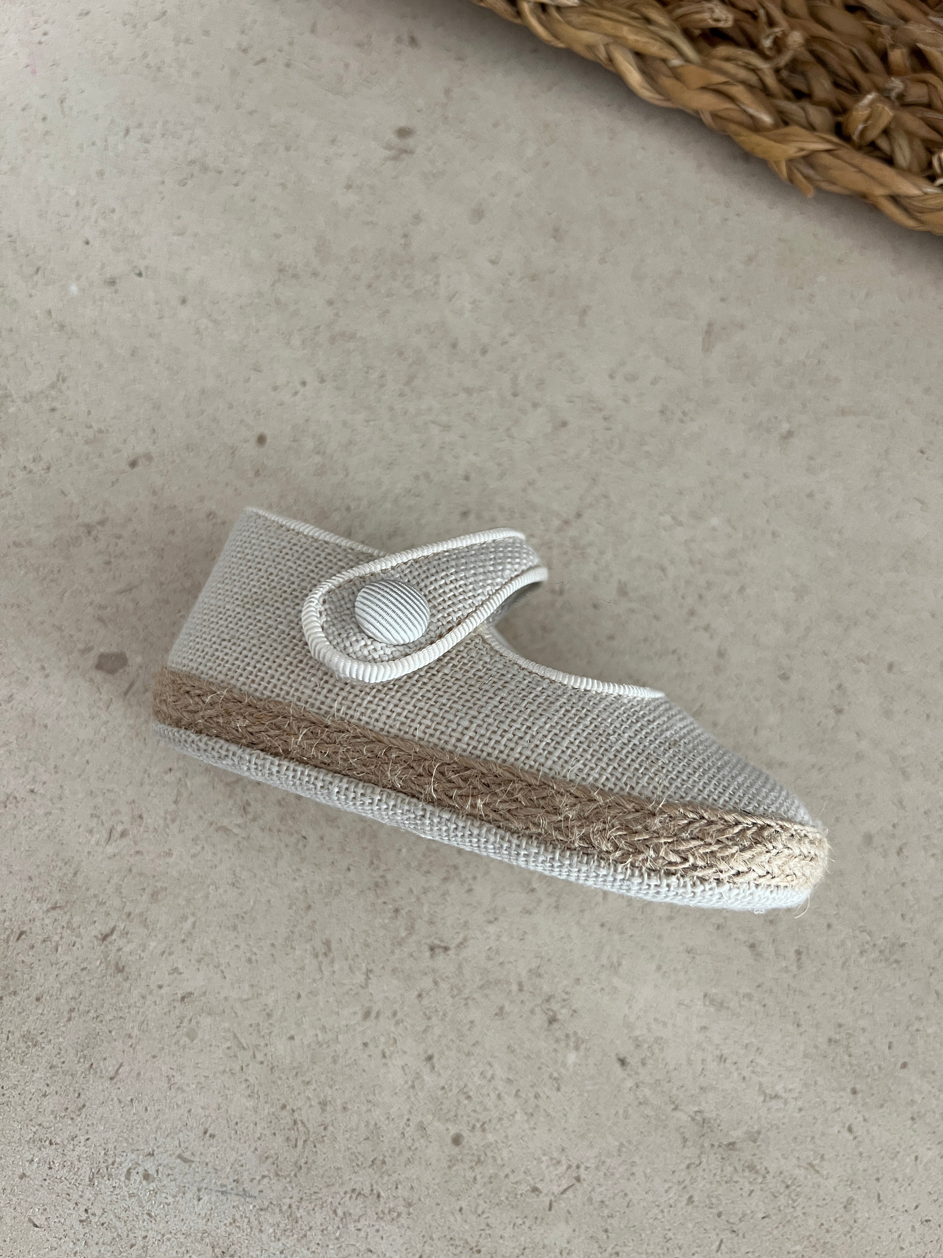 Al estar forradas en lino, son súper blanditas y suaves para no dañar sus delicados piecitos durante sus primeros meses de vida hasta que comiencen a andar. Además, el cierre es muy práctico al ser de velcro pero simula un bonito botón forrado al tono del lino de la Mercedita.