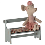 Un banco de madera que encaja a la perfección con la familia de ratones. Tiene un hermoso aspecto antiguo pintado a mano (pueden ocurrir variaciones) y un cojín suave en la parte superior para un asiento cómodo.