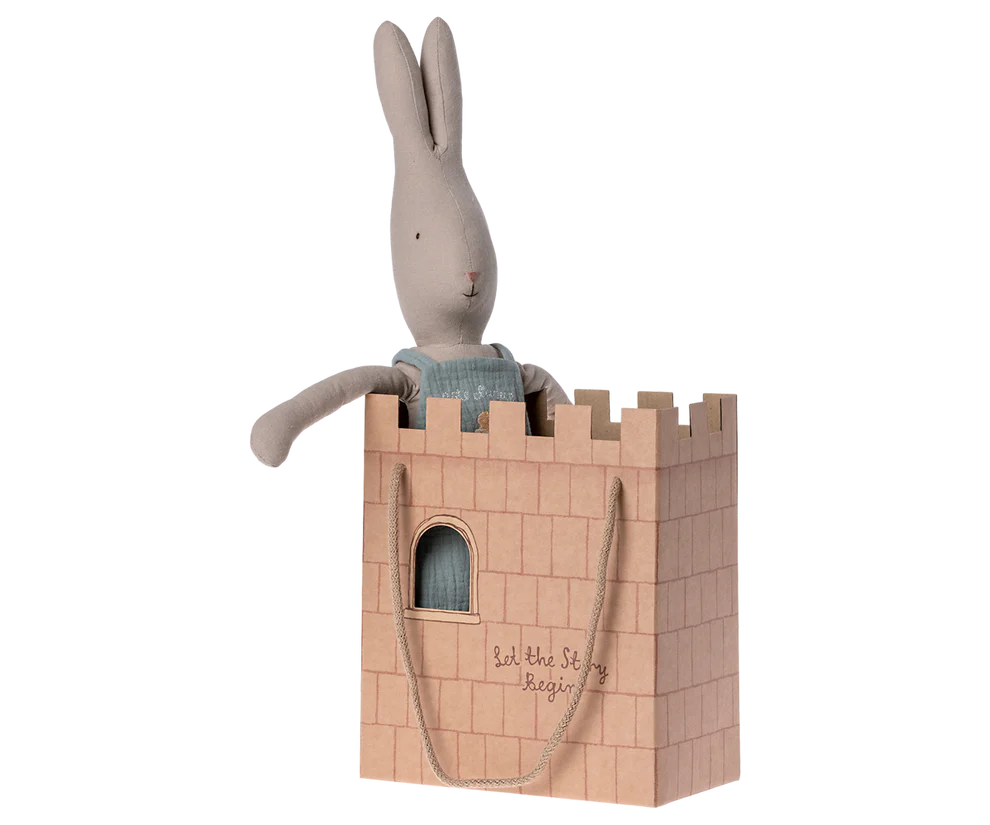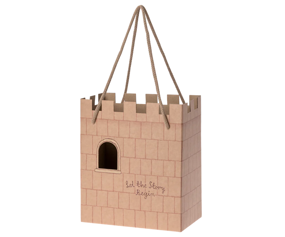 Una bolsa de papel con forma de castillo real. Esta es la forma perfecta de añadir el toque final a tus regalos de Maileg o de llevar a tus amigos de Maileg a casa desde la tienda.