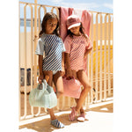 Con originales colores y un diseño ligero y práctico, esta bolsa es perfecta para playa, piscina o paseos por la ciudad. Su material de plástico LDPE reciclable y la rejilla integrada la hacen resistente, fácil de limpiar y totalmente desmontable.