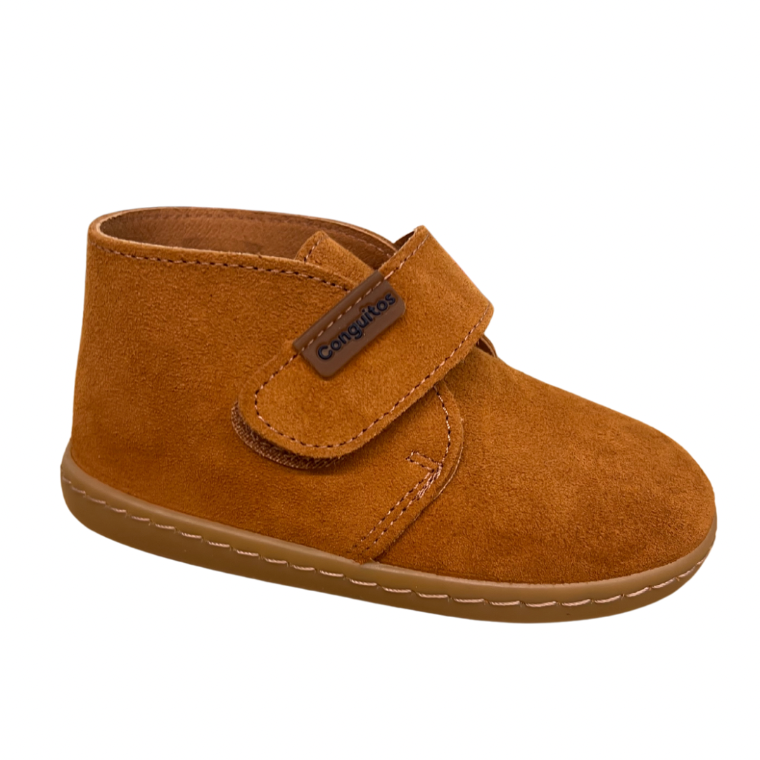 Botines de bebé Primeros pasos, diseñados para el primer gateo/paso del niño. Este Zapato respetuoso aúna el diseño técnico de la fisionomía del pie del bebé con materiales innovadores y sostenibles. La puntera y el talón reforzados estabilizan el movimiento y favorecen el gateo. Suela flexible. Cierre con correa adherente, que permite la movilidad a la vez que asegura la sujeción, completan el calzado perfecto para el desarrollo psicomotor del bebé en sus primeros años de vida.
