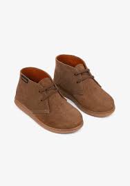 Botas de niño estilo safari en color marrón confeccionadas con tecnología repelente al agua, para que el agua permanezca en el exterior y no se filtre en la bota. Gracias al tirador trasero y a su cierre de cordón, es muy fácil de poner y ajustar al pie de los niños. Además, esta pequeña bota es un calzado muy flexible y versátil, ya que es elegante y al mismo tiempo muy cómodo para el uso diario. Tiene la suela cosida a la parte exterior, aumentando la durabilidad del calzado, al mismo tiempo que tiene un poder antitorsión y es capaz de absorber impactos.