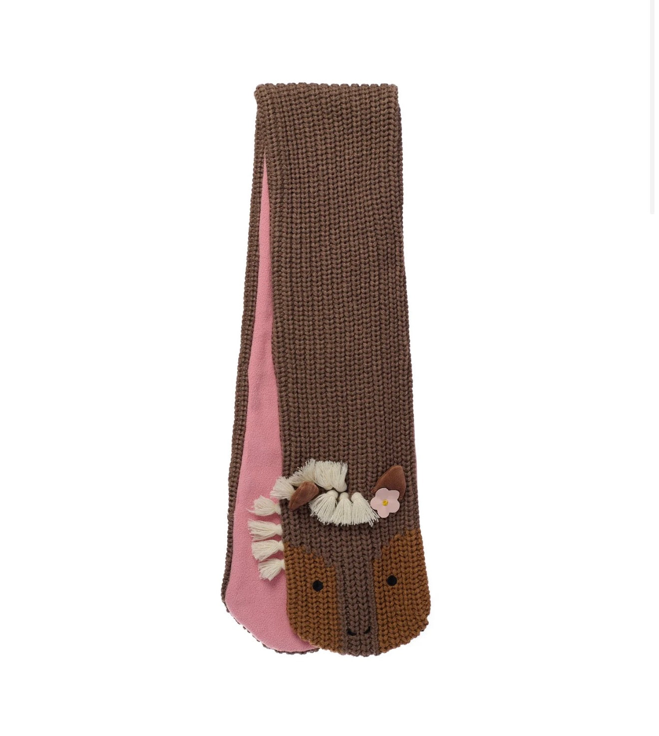 ¡A trotar y a mantenerse bien calentitos este invierno con nuestra bufanda Peggy Pony! Con una dulcísima carita bordada, pequeñas orejitas, una flor rosa en PU y una suave crin de flecos, es tan adorable como calentita. Además, está forrada en suave tejido polar para aportar un extra de confort durante los días más fríos.