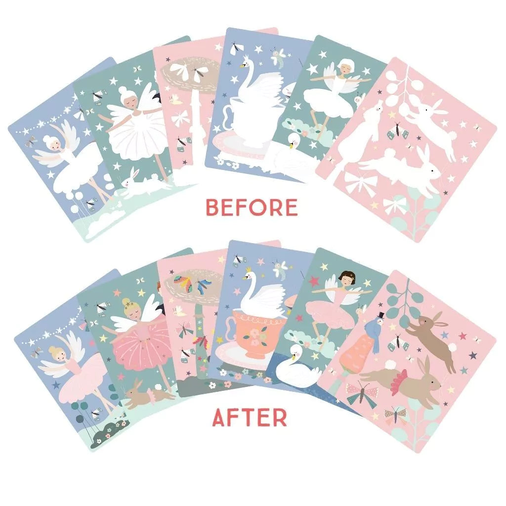 ¡Nuestras almohadillas mágicas para caballete de agua son muy divertidas! Al igual que nuestras populares tarjetas de agua, llena el bolígrafo con agua y colorea los diseños para verlos aparecer mágicamente y luego desaparecer una vez secos. Las 6 divertidas hojas de colores brillantes se mantienen juntas en un bloc encuadernado en espiral que le permite darles la vuelta una vez completadas. ¡El caballete incorporado sostiene el bloc para que puedas usarlo como un artista "adecuado"! ¡La almohadilla se puede reutilizar una y otra vez y te divertirás mucho revelando el colorido carruaje de calabaza de cuento de hadas, las torres, los caballos, los pájaros y más! Una vez que haya terminado su sesión creativa, cierre la almohadilla y asegure su bolígrafo acuático especial en el cierre elástico para mantenerlo agradable y seguro. Esta almohadilla portátil es perfecta para llevar de un lado a otro