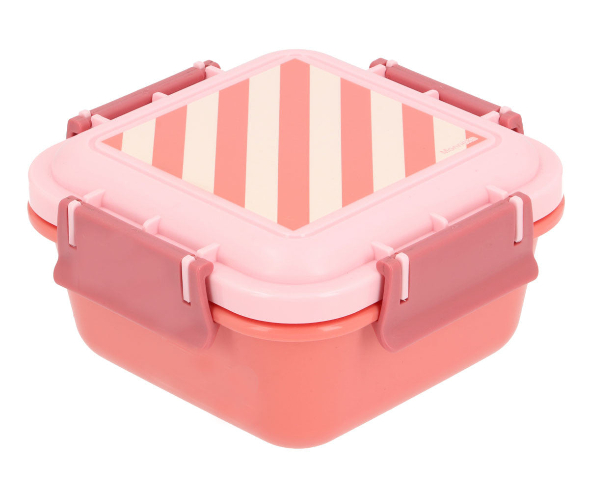 Bonita caja de almuerzo grande para llevar snacks al parque o el almuerzo al colegio de la Colección Monnëka Stripes Bloom & Blush.