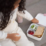 Caja Bento campus grande, mantiene los diferentes alimentos separados gracias a dos cajas bento extraíbles con tapa que contiene, a prueba de fugas. El tenedor cabe dentro de la caja.