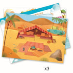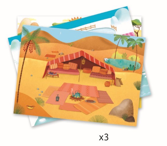 Un gran estuche con un montón de calcomanías y 3 fondos ilustrados grandes que completar sobre el tema de la geografía. Sabana, desierto o casquete polar: el niño elige un decorado y coloca encima las imágenes transferibles. Con un lápiz, frota las imágenes para posicionarlas donde quiera. Una actividad fácil y divertida para recorrer el mundo y crear bonitas escenas con total libertad.
