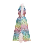 Capa reversible en colores pastel vibrantes: un lado unicornio tierno de peluche y otro dragón metálico con escamas ondulantes. Perfecta para transformar el juego con solo una vuelta.