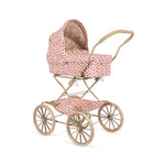 Un verdadero original de Konges Sløjd: nuestro cochecito para muñecas de estilo vintage está diseñado con cuatro ruedas grandes, tela acolchada suave, delicados bordes festoneados y un colchón. Cuenta con una canasta de almacenamiento suavemente acolchada debajo del elevador. La estructura está hecha de metal con asas suaves y esponjosas para un fácil agarre.