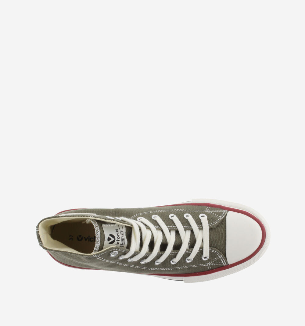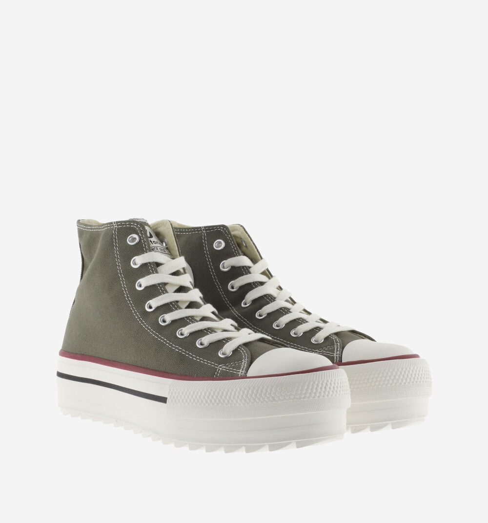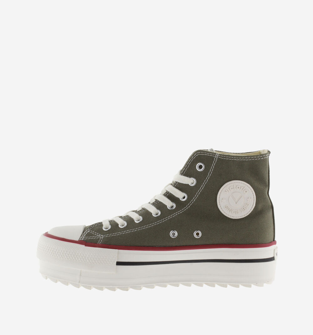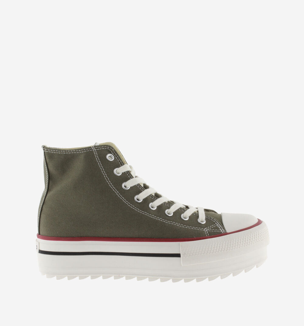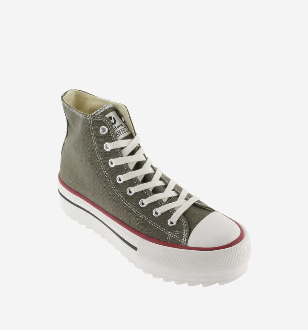 Women's canvas high-top sneakers. With a 4 centimeter platform to provide more height. Beige patch victory embossed on the inner side and label on the tongue. Serrated sole with black detail and reinforcement on the toe that makes them more resistant and durable.