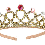 Este accesorio presenta un diseño elegante en tonos dorados con piedras, lo que le proporciona un aspecto distintivo.