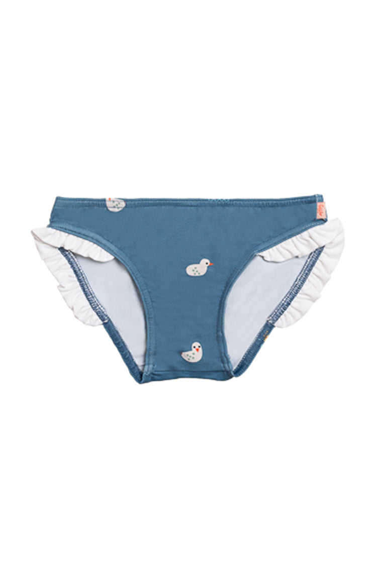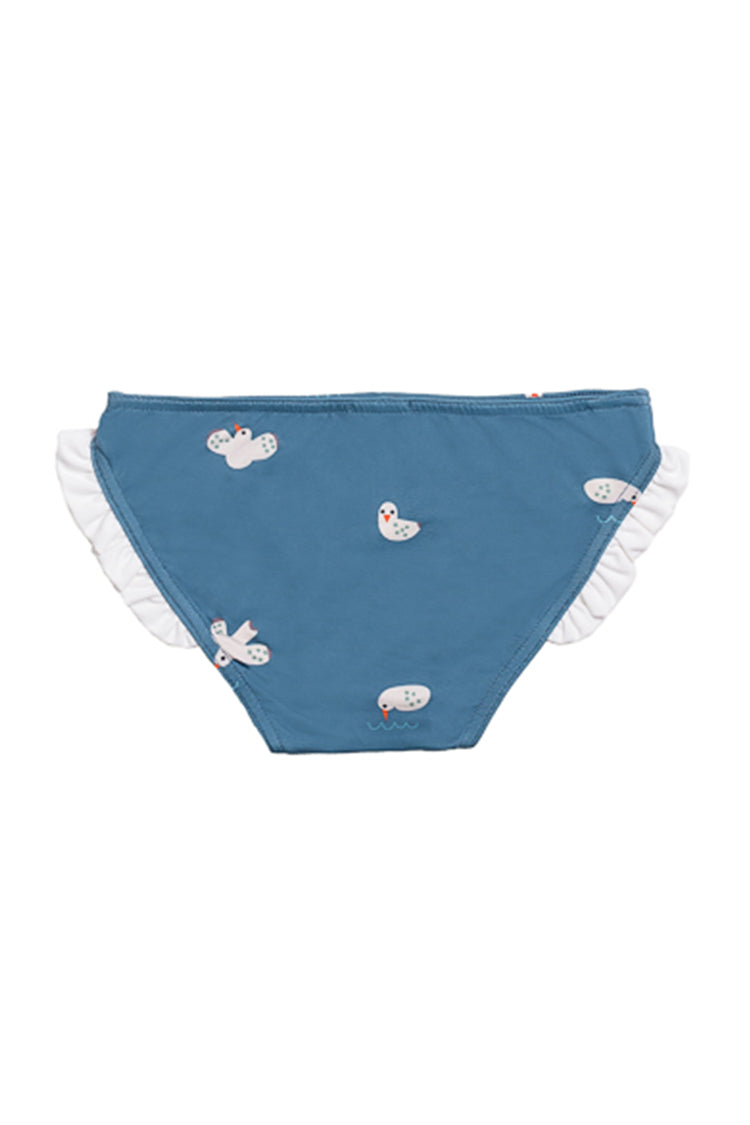 Culetín con estampado de gaviotas. Diseño exclusivo y propio. Detalle de volantes laterales en contraste en las perneras.