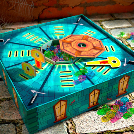 Si se introducen correctamente, se abre la cámara del tesoro y les esperan valiosas piedras preciosas. Con cada turno, los jugadores podrán hacerse más ricos… o perderlo todo. Gana quien reúna más piedras preciosas.