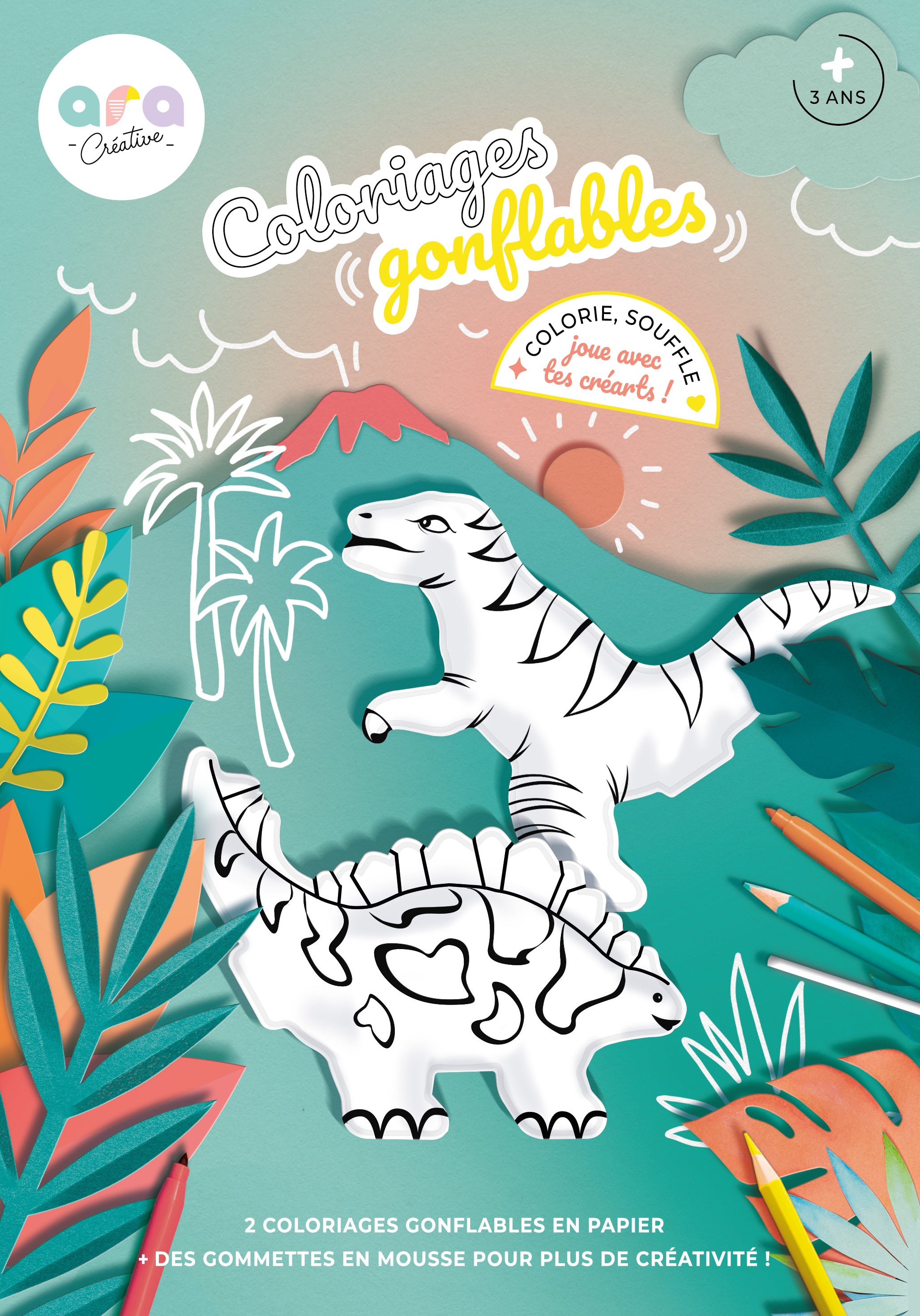 Contiene 2 dinosaurios inflables + pegatinas de espuma