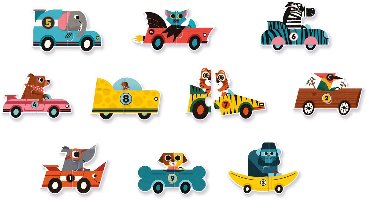 -Puzzle duo bolides es un puzle lúdico en el que el niño reconstruye vehículos con siluetas uniendo 2 piezas. A partir de 2 años.