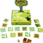 Variante con juego de memoria, de El Frutal. Tras lanzar el dado, los jugadores/as deben girar una de las tarjetas en busca del dibujo de las cerezas. Si lo encuentran, pueden coger unas cerezas del árbol. Si no, hacen avanzar al cuervo por el tablero, o pierden el turno. Si el cuervo Teo llega al árbol cuando aún quedan cerezas, todos/as pierden conjuntamente.