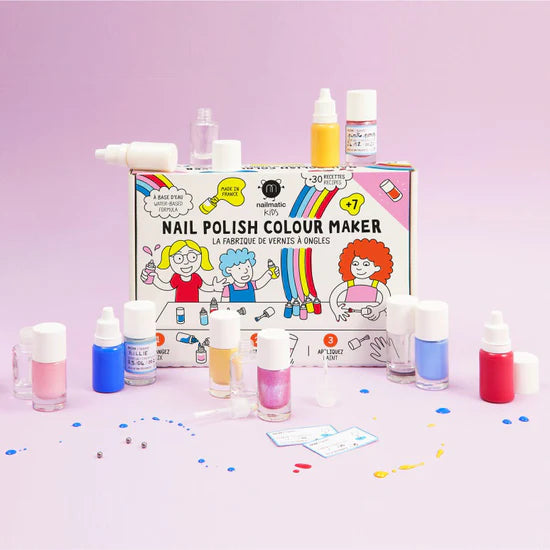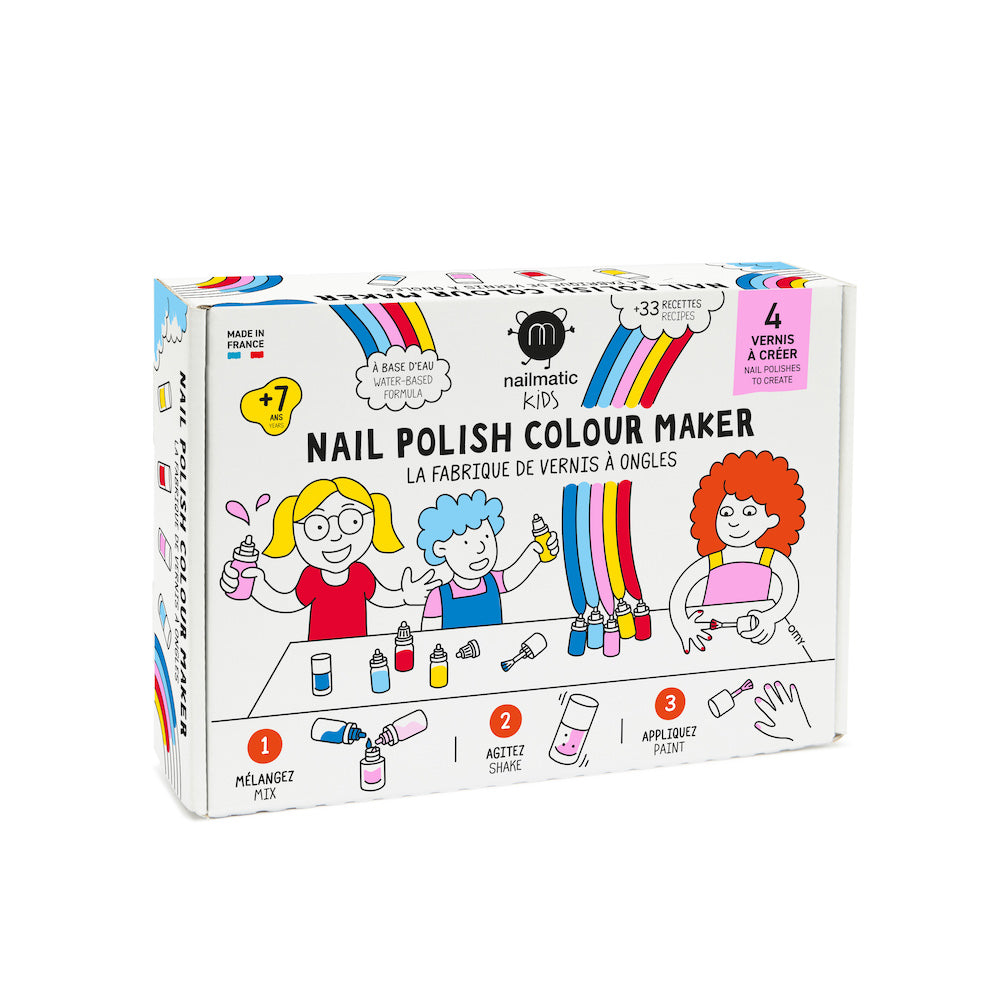 Fábrica de esmaltes de uñas para niños. Este divertido kit permite crear hasta 4 pinta uñas de forma segura ¡A base de agua, sin tóxicos! De Nailmatic kids