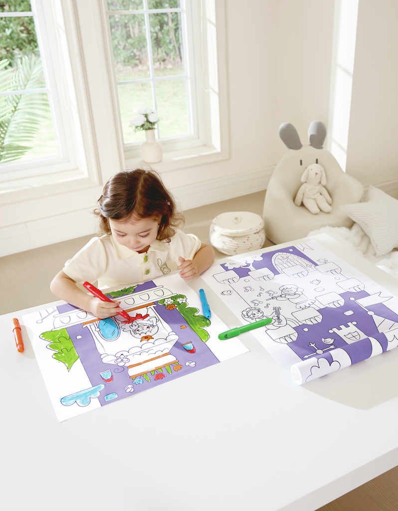 Los niños pueden colorear, recortar y reutilizar sus ilustraciones como pegatinas, a la vez que desarrollan la motricidad fina y la confianza creativa.