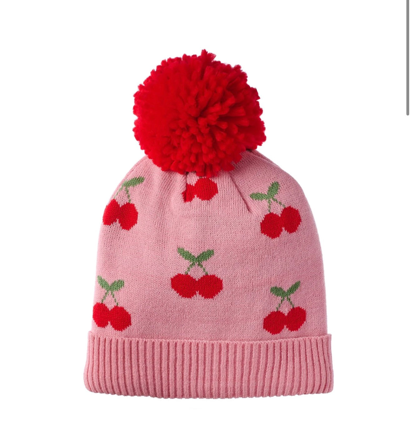 Aporta un toque de color a los días fríos de invierno con nuestro alegre gorrito de punto con cerezas. Decorado con brillantes cerecitas rojas y un pompón a juego, está forrado de suave tejido polar para mantener el calorcito extra.
