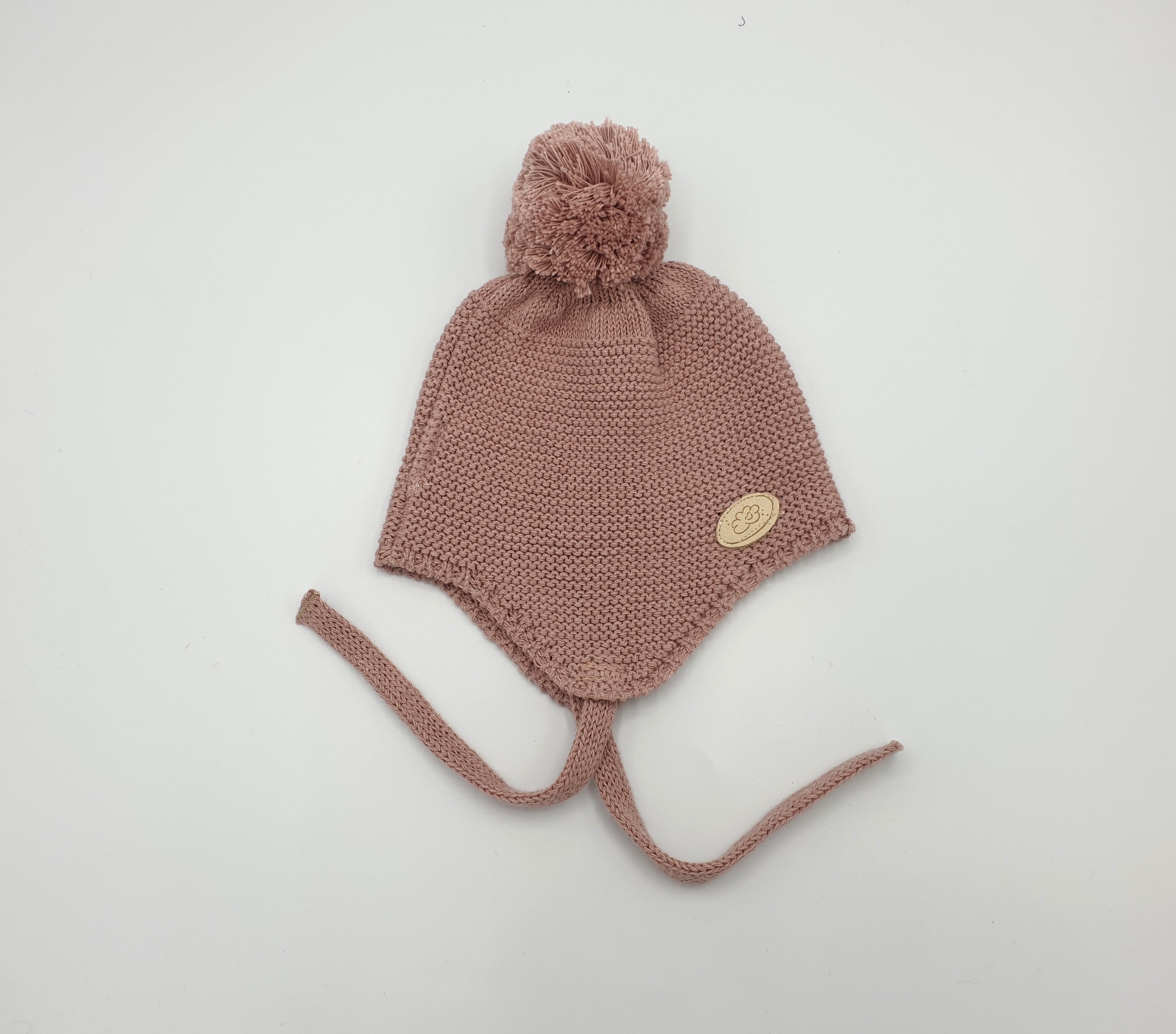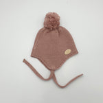 Gorro de bebé de punto bobo con orejeras y pompón.