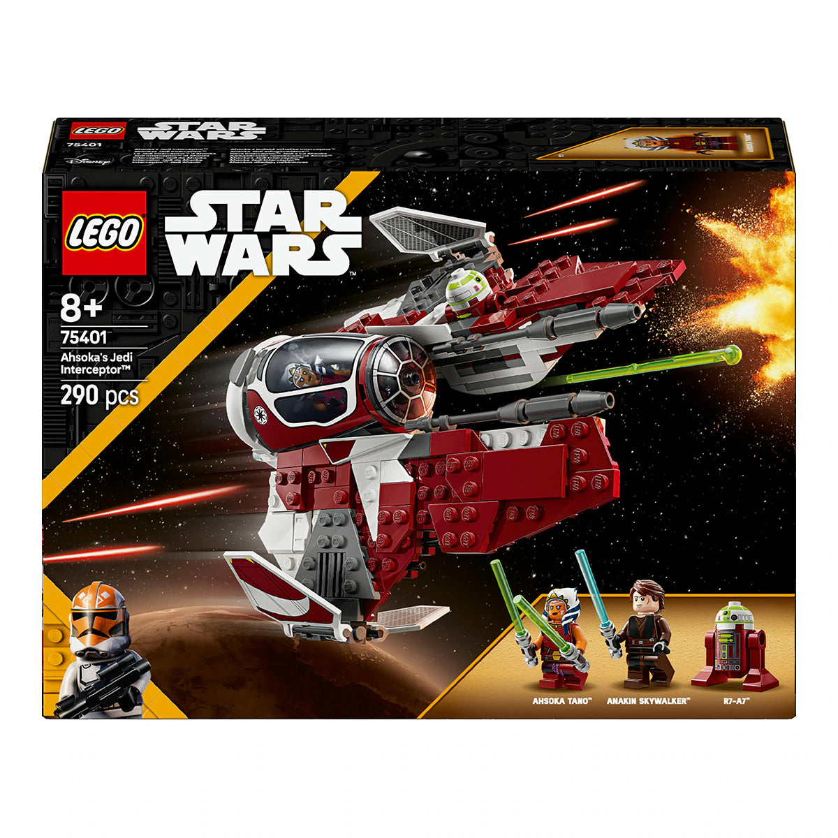 El juego construible incluye 2 minifiguras LEGO Star Wars (Ahsoka Tano y Anakin Skywalker con espadas láser) y una figura LEGO de un droide (R7-A7) para dejar volar la fantasía. Puedes colocar a Ahsoka en la cabina del interceptor Jedi, que también cuenta con espacio a bordo para R7-A7 y para las espadas láser de Ahsoka.