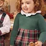 Vestido Cuerpo Punto Falda Tela Cuadros Escoceses Verde Musgo