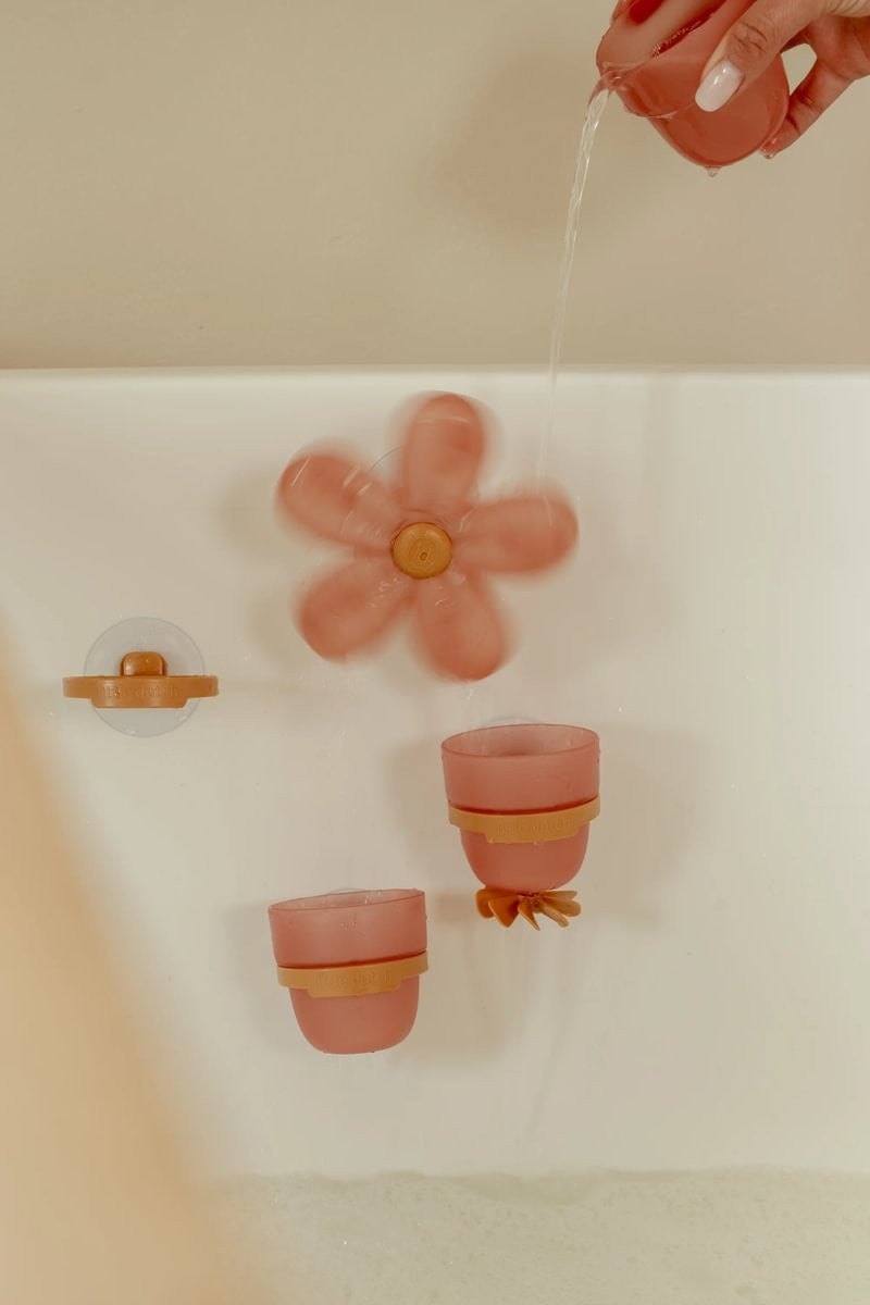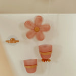 Precioso y divertido juego de tazas y flor para la hora del baño.