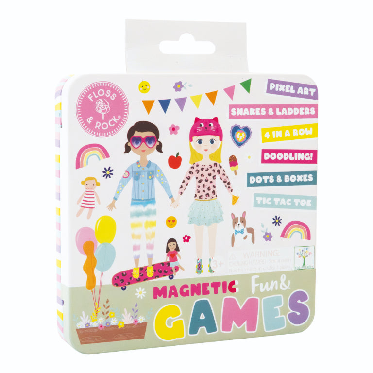 El juego magnético "Dolly" de Floss & Rock es una colorida lata que esconde hasta seis juegos diferentes. Con ilustraciones, los niños a partir de 3 años pueden desarrollar su creatividad e imaginación jugando en casa y fuera de ella.