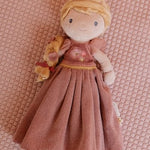 Conoce a la Princesa Julia, una suave muñeca de peluche con una hermosa trenza rubia y adorables florecitas en el pelo.