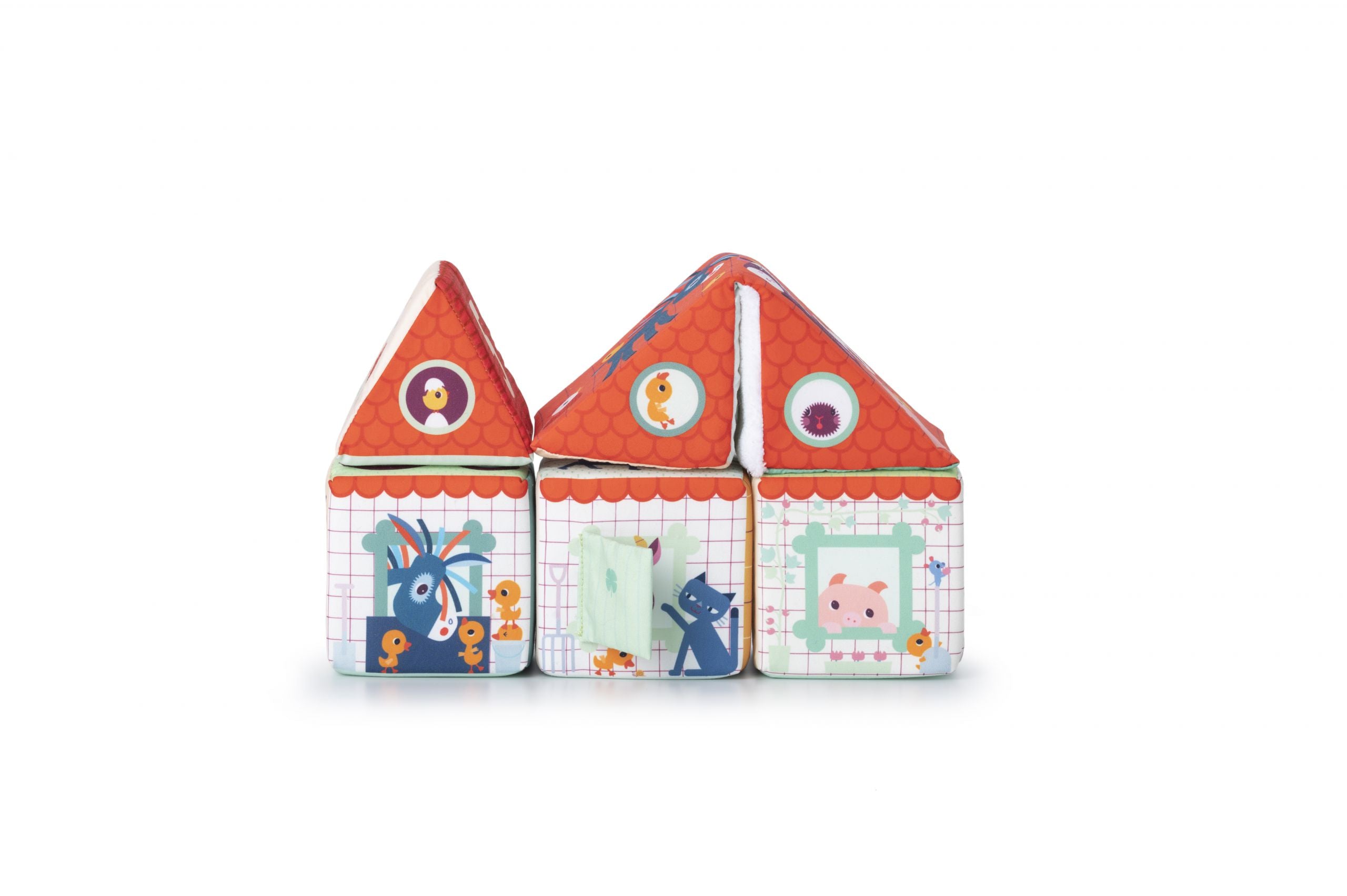 Este juego de 5 cubos mullidos presenta un nuevo reto en cada cara. Ensamblado de una casa de granja, los animales de la granja, las cifras, descubrimiento de diferentes materiales.