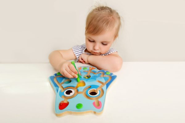 Laberinto magnético que contiene unas varillas de plástico magnético que se utilizan para conducir las diferentes bolitas de colores a lo largo de los caminos del laberinto. El proceso de juego permite a los niños reconocer el color y ejercitar su capacidad de observación y de pensamiento lógico. Los diferentes laberintos de animales y sus complicadas pistas atraerán la curiosidad de los niños y harán este juego cada vez más estimulante y divertido. Fabricado con madera de excelente calidad.