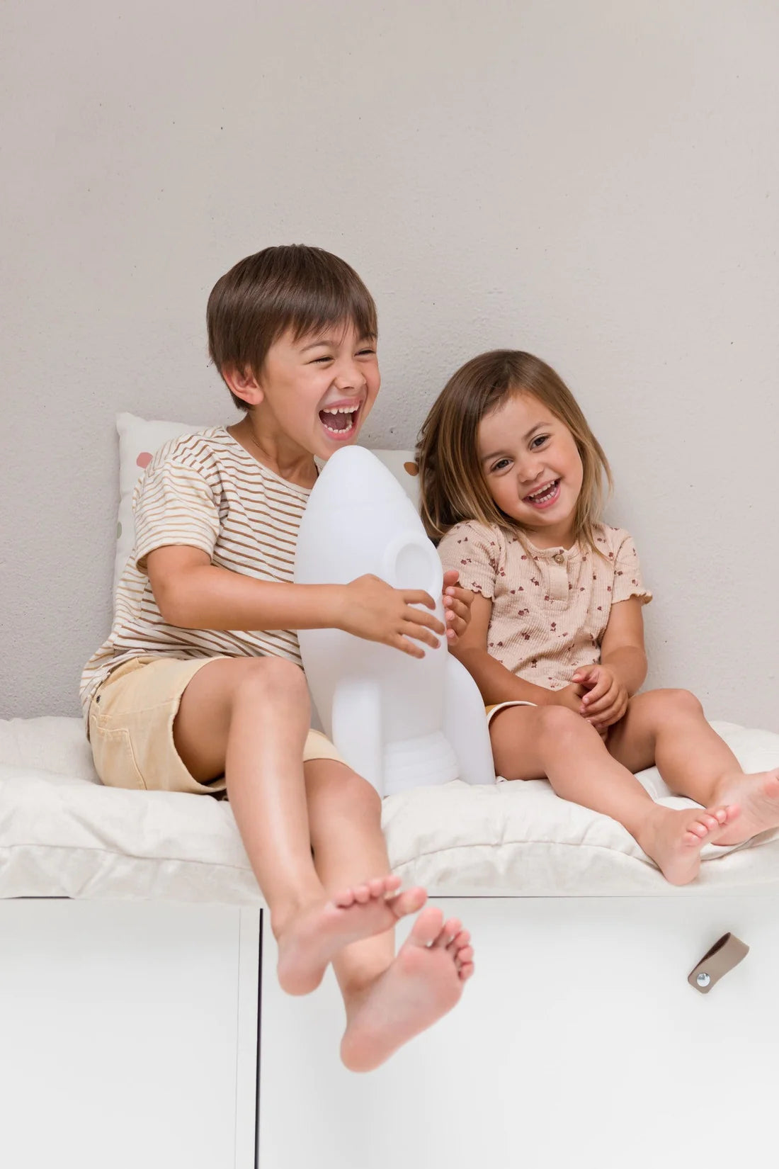 Esta alegre luz nocturna LED es recargable mediante USB y cambia de color tocando su parte posterior. Haga que la luz nocturna se apague automáticamente después de 15 minutos o elija dejarla encendida toda la noche, ambas opciones son posibles usando el botón de encendido/apagado. ¡Su textura suave hace posible que los niños lo abracen de forma segura antes de tranquilizarlos para que se duerman!