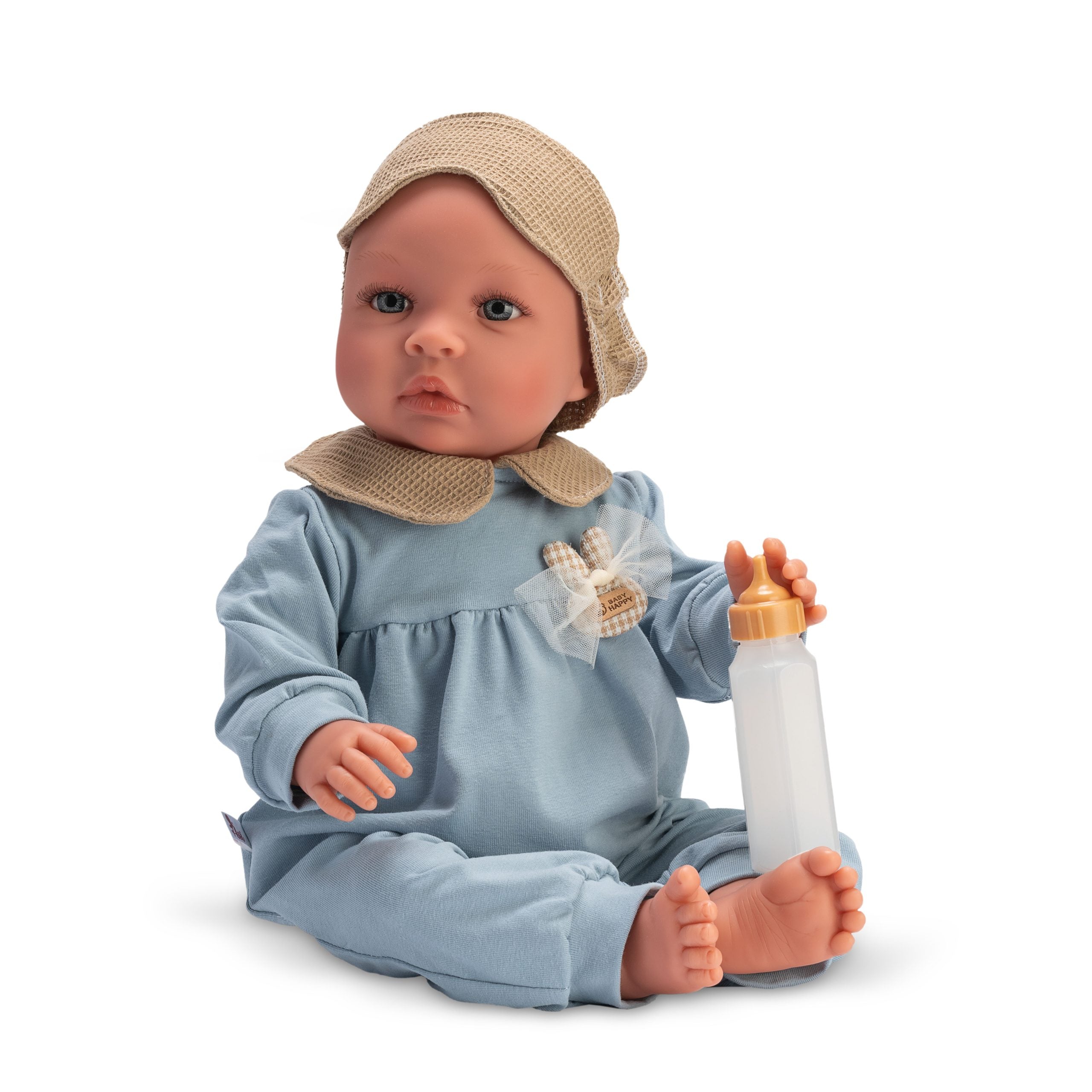 Conoce a Leo, uno de nuestros muñecos estrella de 46 cm de altura. Leo es conocido por su cuerpo blando y extremidades de vinilo que lo hacen extremadamente achuchable y cómodo de abrazar. Su tacto especial y diseño cuidadoso aseguran una experiencia de juego suave y agradable.