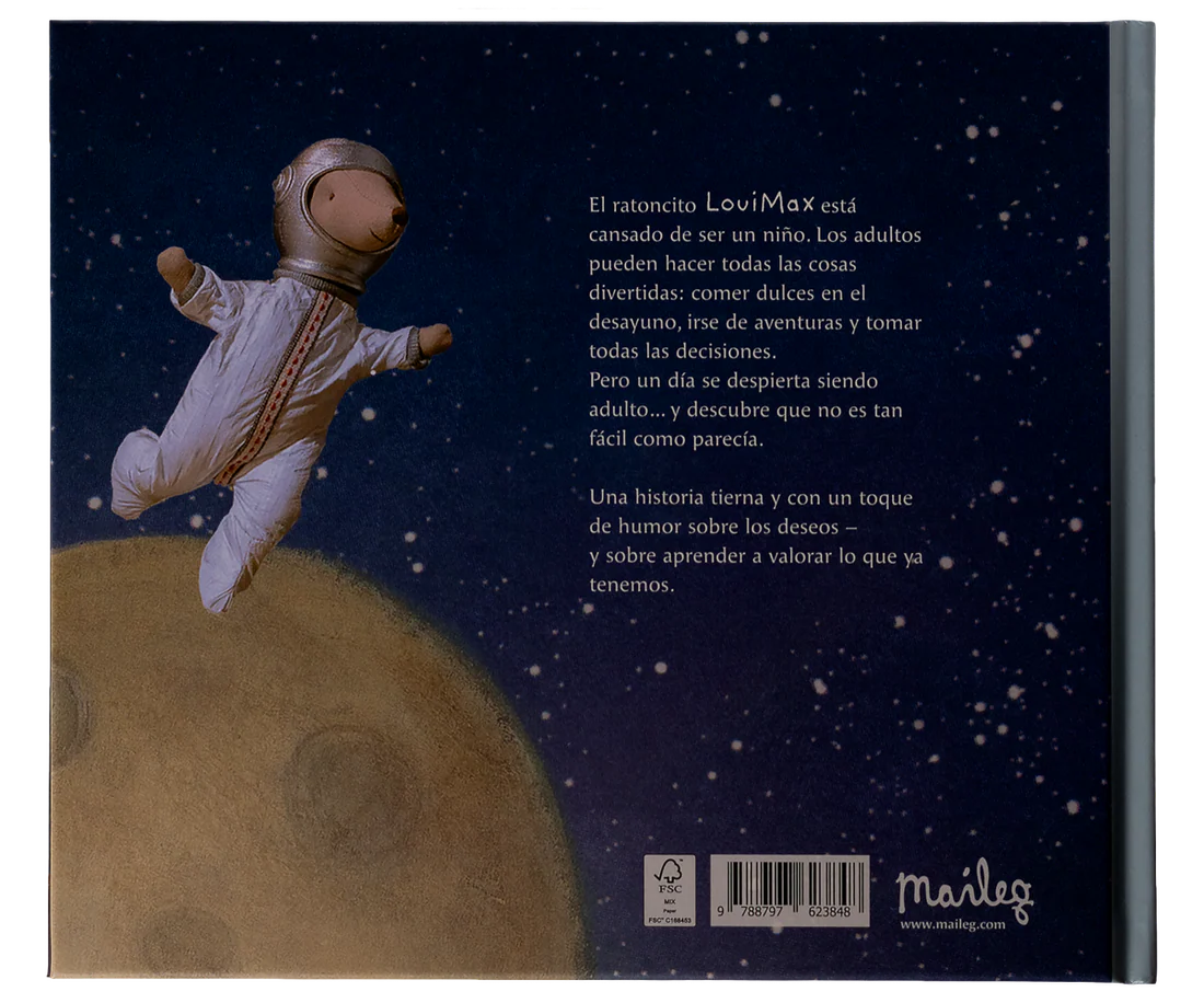 LouiMax el ratón está cansado de ser un niño. Los adultos se lo pasan en grande. Una historia entrañable y divertida sobre desear algo y darse cuenta de lo que ya se tiene. Este libro cuenta con 58 páginas con preciosas ilustraciones.