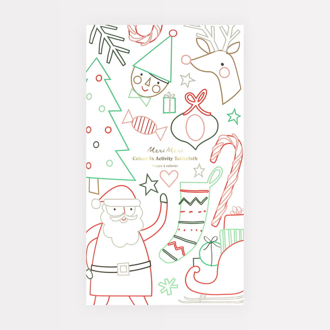 ¡Pintar en el mantel y que esté permitido es el sueño de cualquier niño! Este mantel de papel, lleno de divertidos iconos festivos para colorear, es una actividad creativa ideal para disfrutar durante las vacaciones. Si buscas ideas para fiestas de Navidad, esta es una opción perfecta, ¡y también un regalo maravilloso!