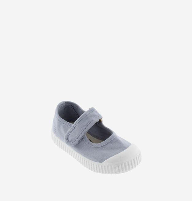 Merceditas de lona para niños fabricadas en una combinación de algodón reciclado DREC® (Dyeable Recycled Eco Cotton) y algodón ecológico cultivado, hilado y tejido en España. Cierre con tira adherente para un ajuste fácil y seguro. Suela de TR flexible con refuerzo en la puntera para una mayor resistencia y durabilidad.