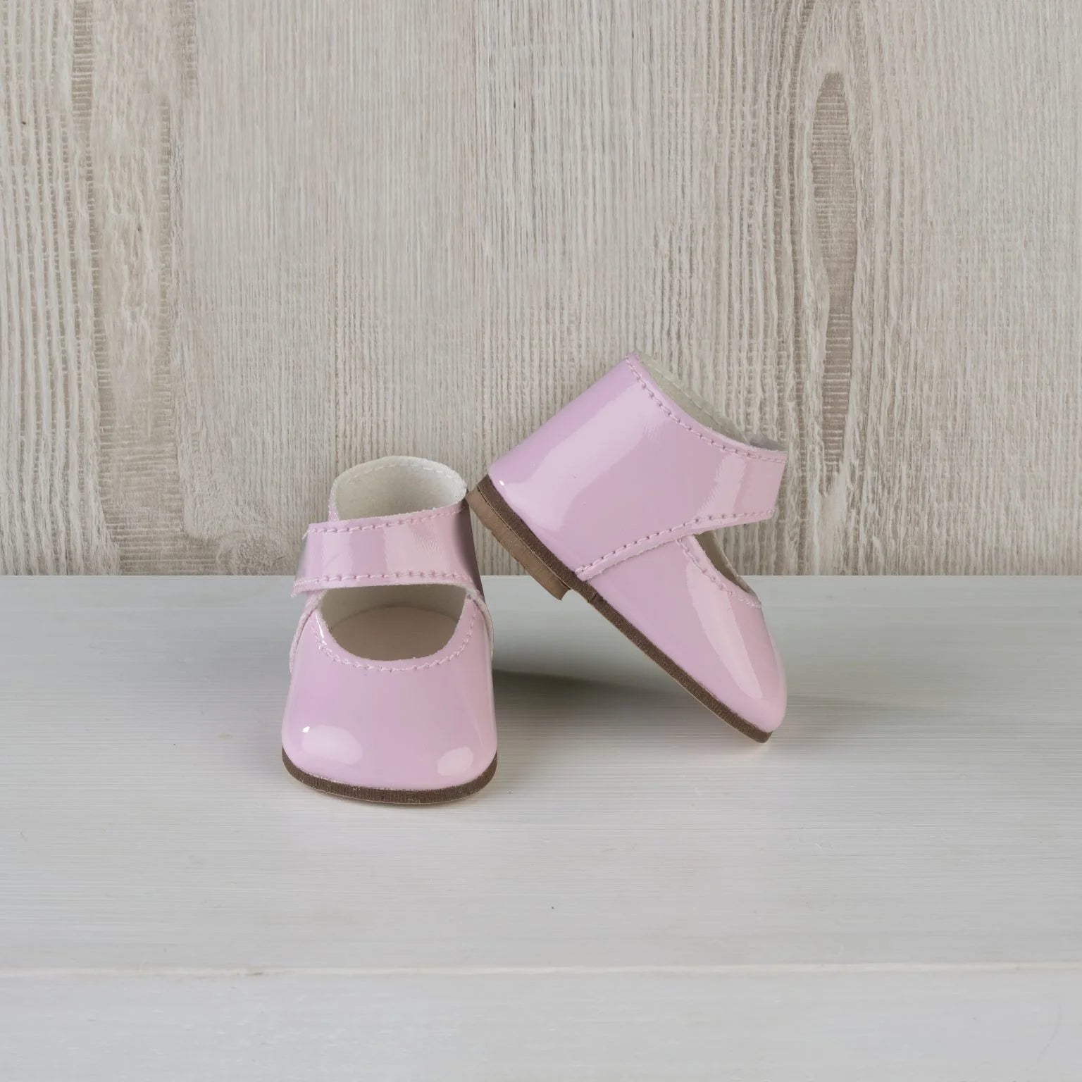 Merceditas en color rosa de charol para muñecos de 36 a 40cm