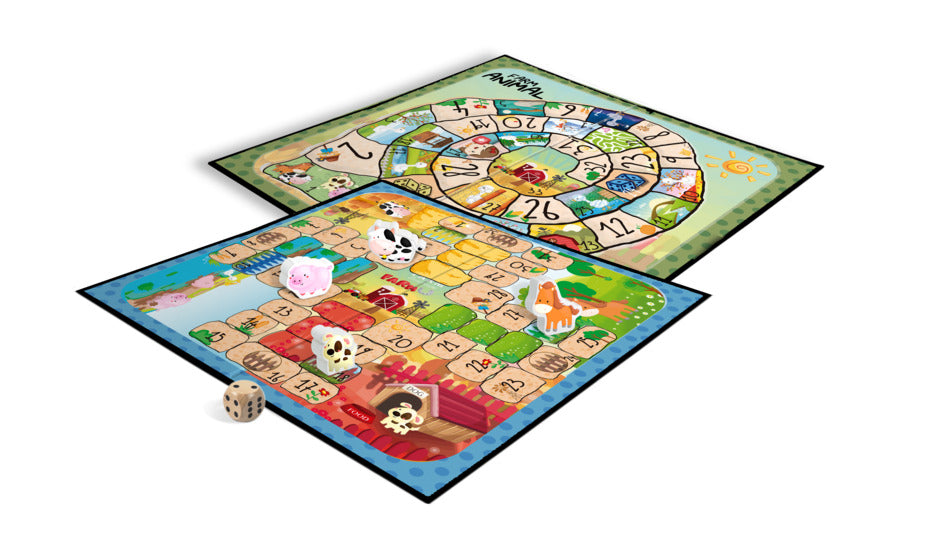 Mi primer juego de PARCHÍS-OCA, es un juego basado en los juegos de mesa tradicionales pero con diseños y reglas especialmente adaptados para niños. Todo ambientado en una granja, ayuda al caballo, el perrito , la vaca y el cerdito a llegar al final del camino. Ten cuidado de no caer en la casilla del veterinario… o tendrás que empezar de nuevo…