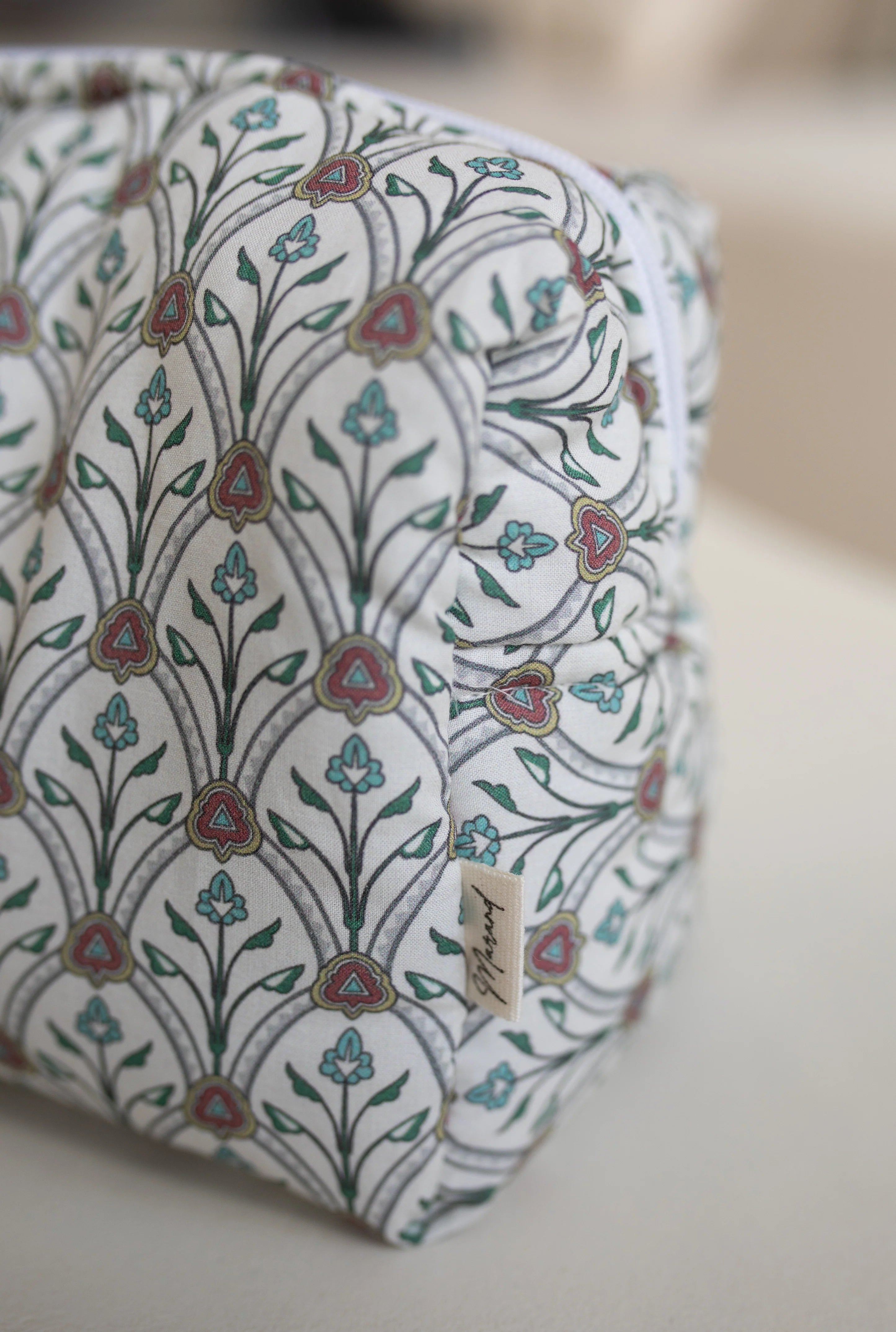 La parte interior de nuestro neceser es plastificado para evitar que se manche, y poder lavar con facilidad. Con bolsillos interiores para poder organizar lo que llevemos.