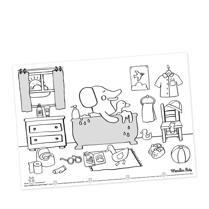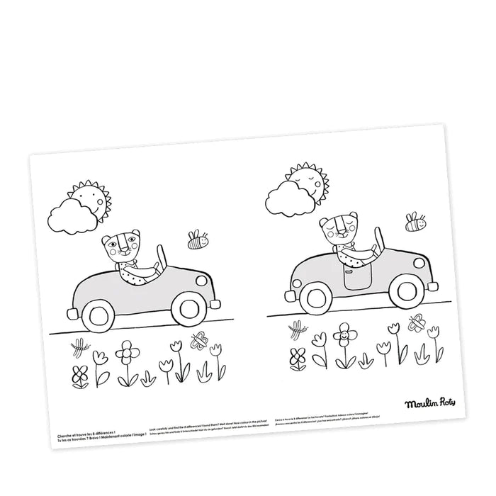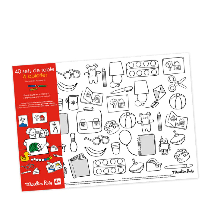 40 Hojas de lo más divertidas para pasar buenos ratos entretenidos en casa, en el restaurante o donde sea. Son hojas tipo mantel con diferentes actividades, como juegos de observación, laberintos,... Todos coloreables y con los personajes de la colección Popipop de Moulin Roty.