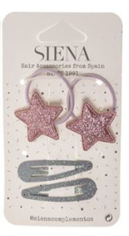 Pack 2 mini coleteros con estrellas y 2 clips glitter