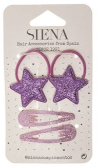 Pack 2 mini coleteros con estrellas y 2 clips glitter