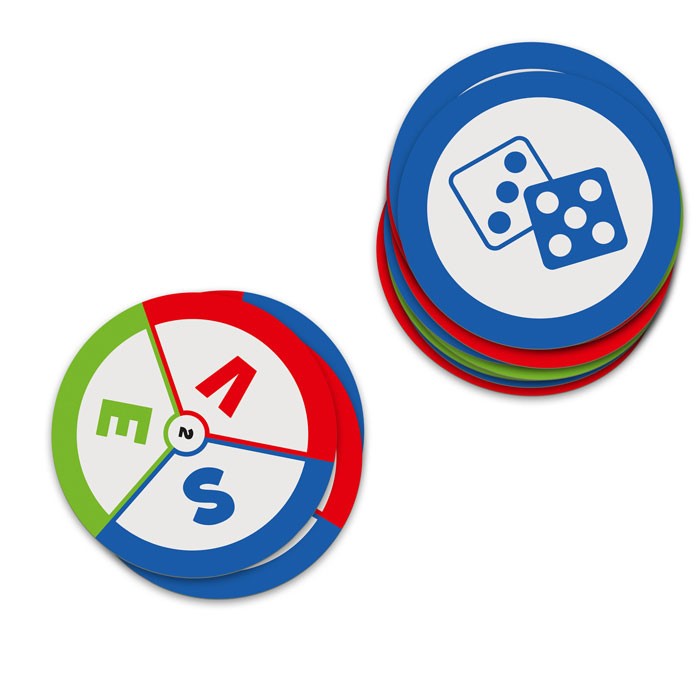 Contenido: 60 cartas redondas doble cara, reglas de juego.