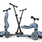 El patinete Highwaykick 1 Push and Go de la marca Scoot and Ride, combina todas las ventajas del Highwaykick One con una nueva característica: la barra de empuje para padres y madres.