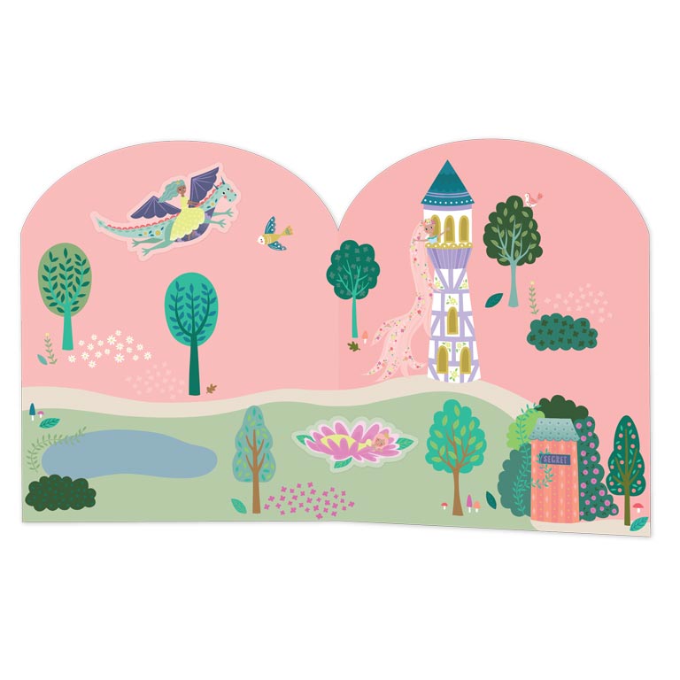 El libro Fairy Tale Stick & Play es muy divertido y educativo al mismo tiempo. Con más de 50 pegatinas reutilizables con formas divertidas que incluyen princesas, dragones voladores, pájaros, ciervos, caballos y carruajes y mucho más. Hay 2 escenas desplegables para crear e inventar historias usando las pegatinas reutilizables.