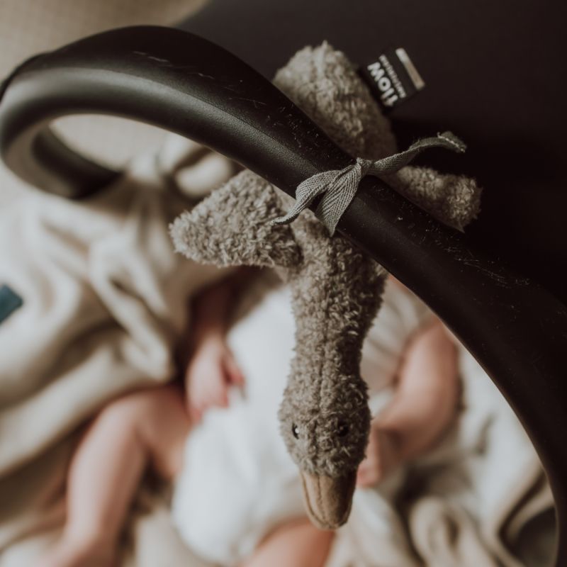 Liva confort , para llevar es una versión más pequeña para llevar de viaje. El peluche con latido del corazón proporciona a su hijo una sensación de seguridad y tranquilidad mientras viaja. Puede sujetar fácilmente el peluche al coche o a la silla de paseo con una cuerda.
