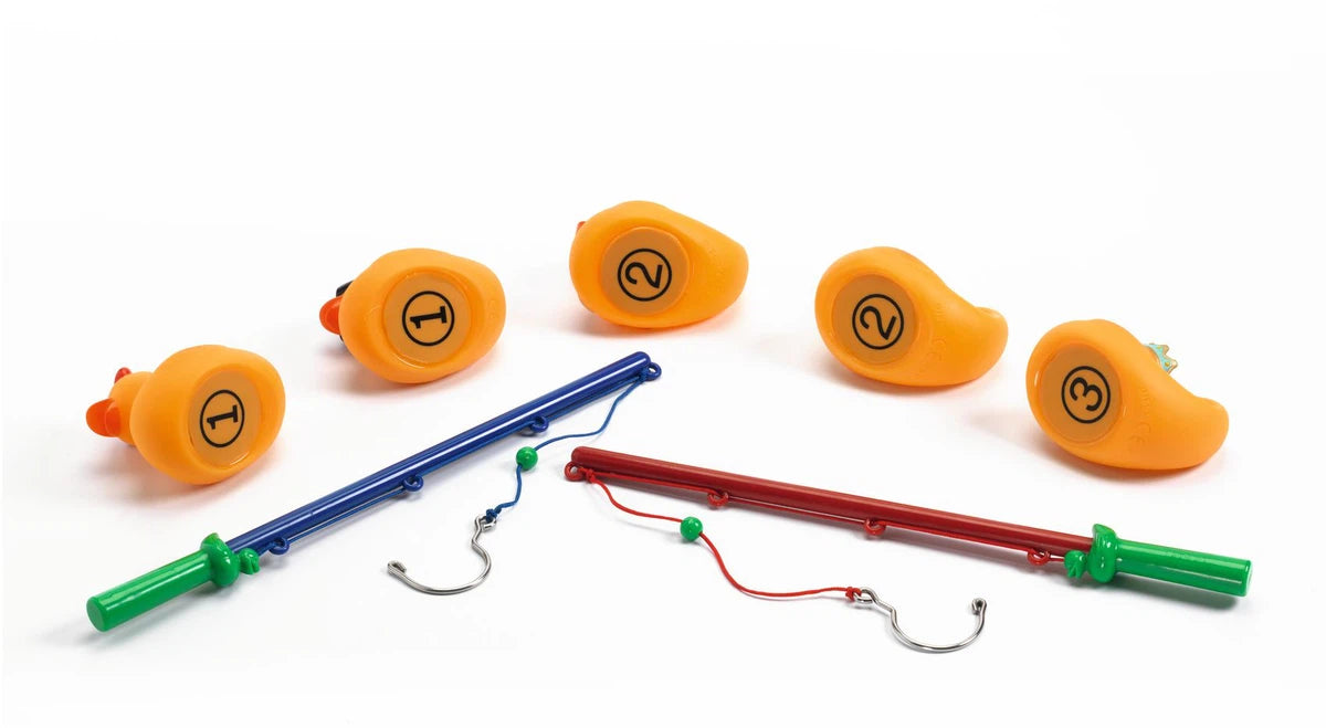 - Juego de pesca que incluye 2 cañas de pescar y 5 patos divertidos. ¡Con un poco de habilidad y muchas risas, los pescadores en ciernes se lo pasarán en grande!