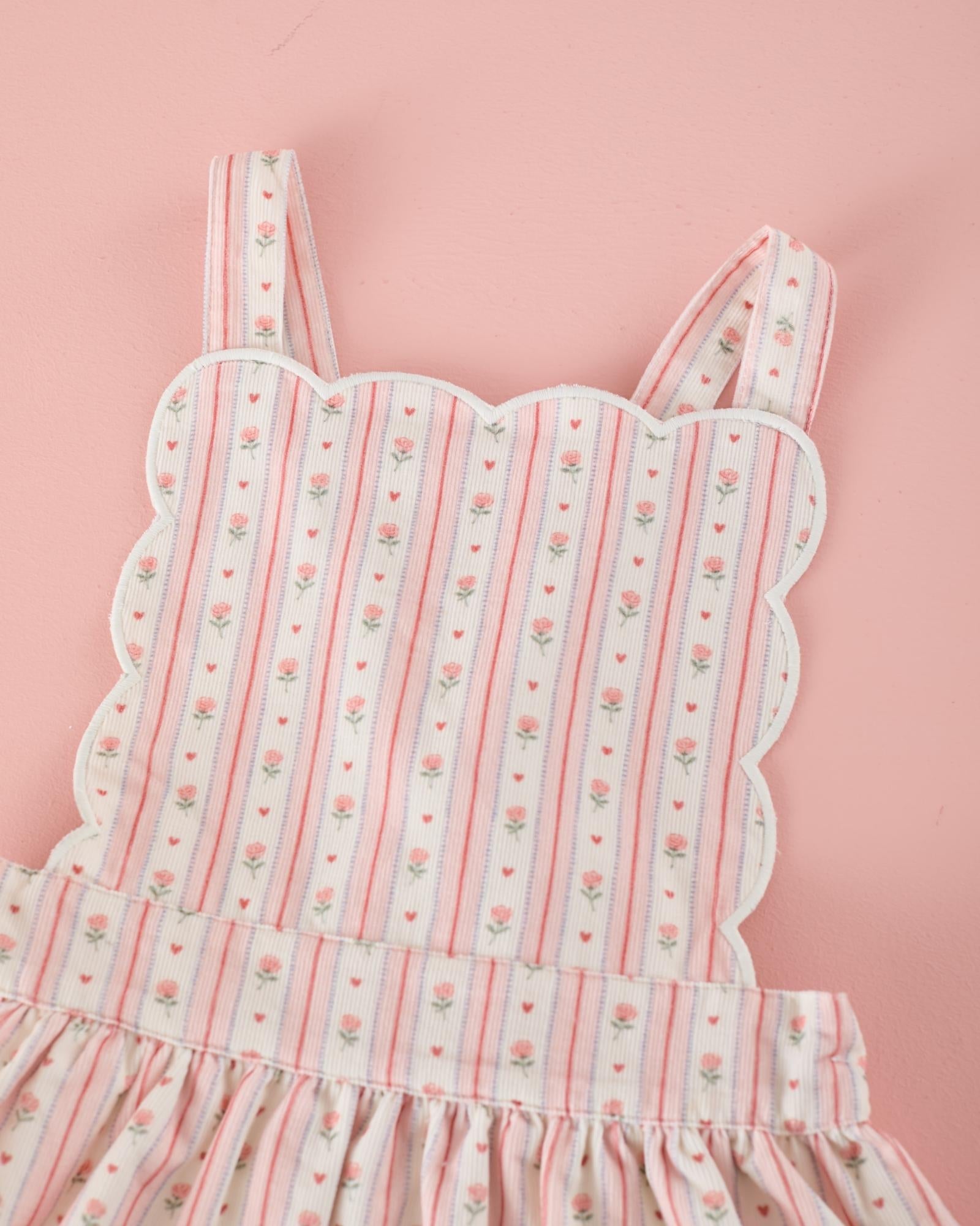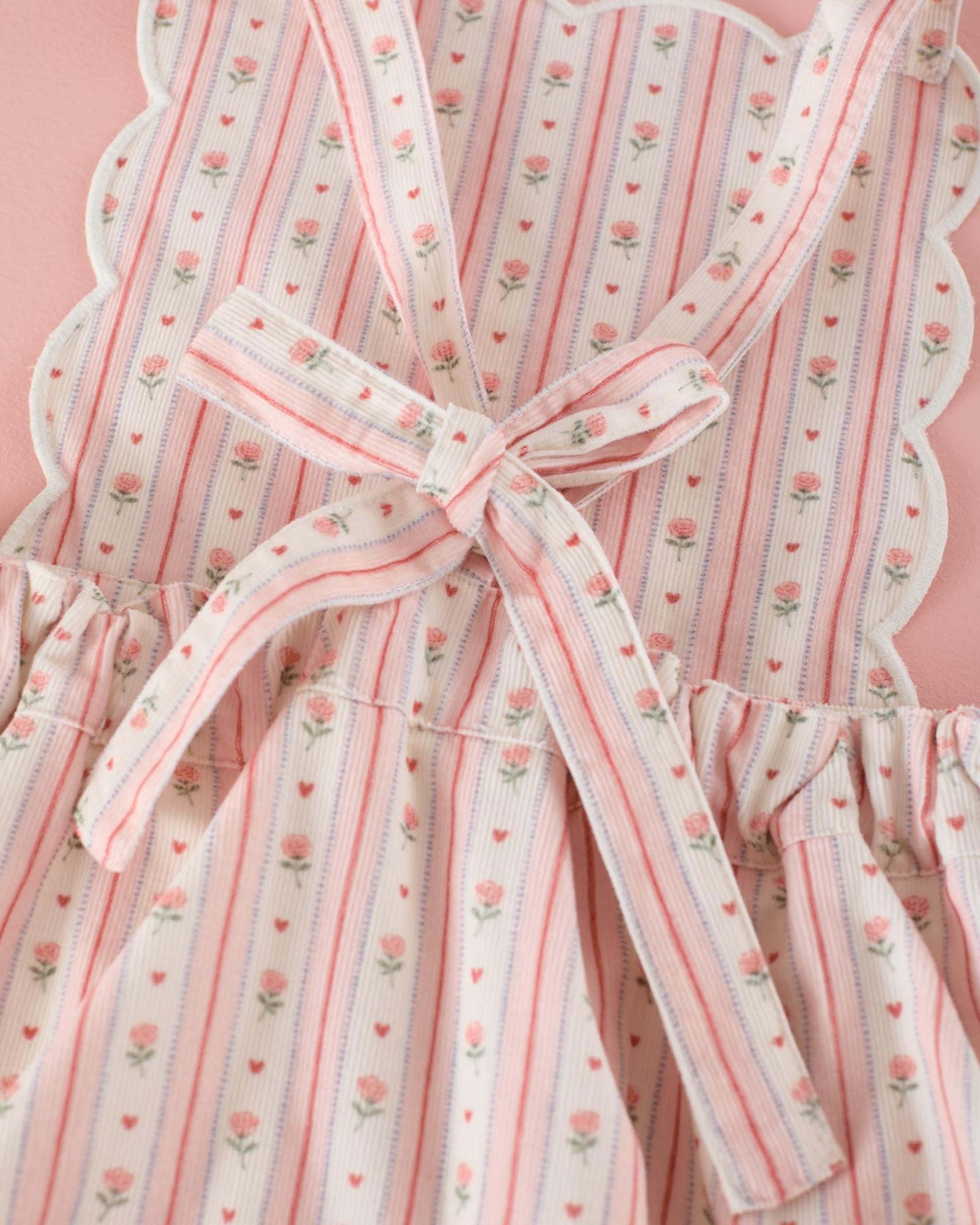 Tejido diseñado por Mi Canesú. Tirantes ajustables con lazada trasera. Elástico en la cintura trasera con goma de ojal.